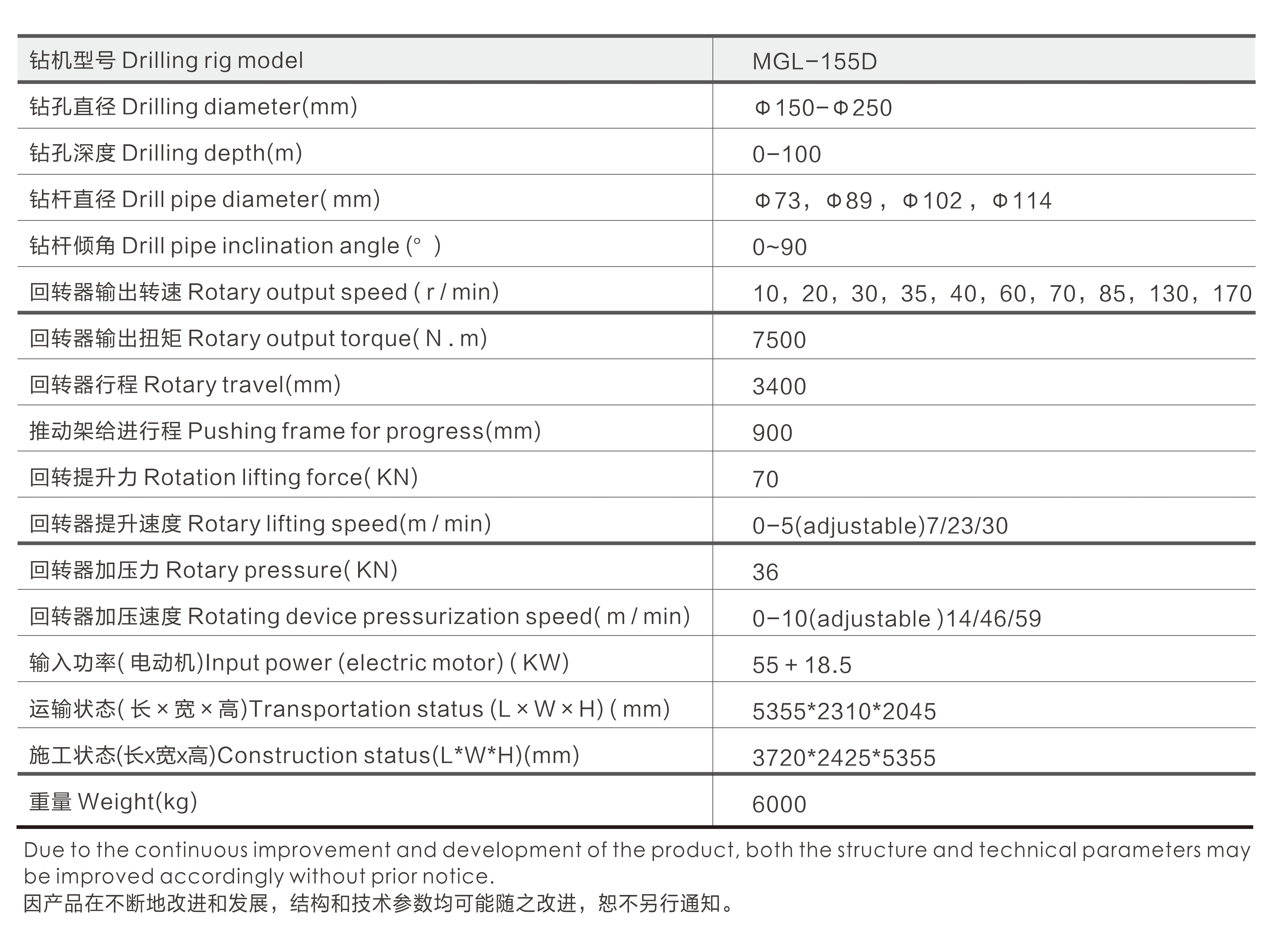 1 、最高转速可达 170 转每分钟;同比 MGL-135D 增加了 20 % ,对使用麻花钻、土层效率更加可观。