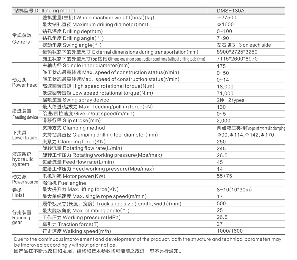 DMS-130A是我司针对IMS搅拌桩、MJS工法桩、RJP工法桩等施工研发的新型钻机,国际一线品牌的电液单元,整机结构合理,电控化程度高。